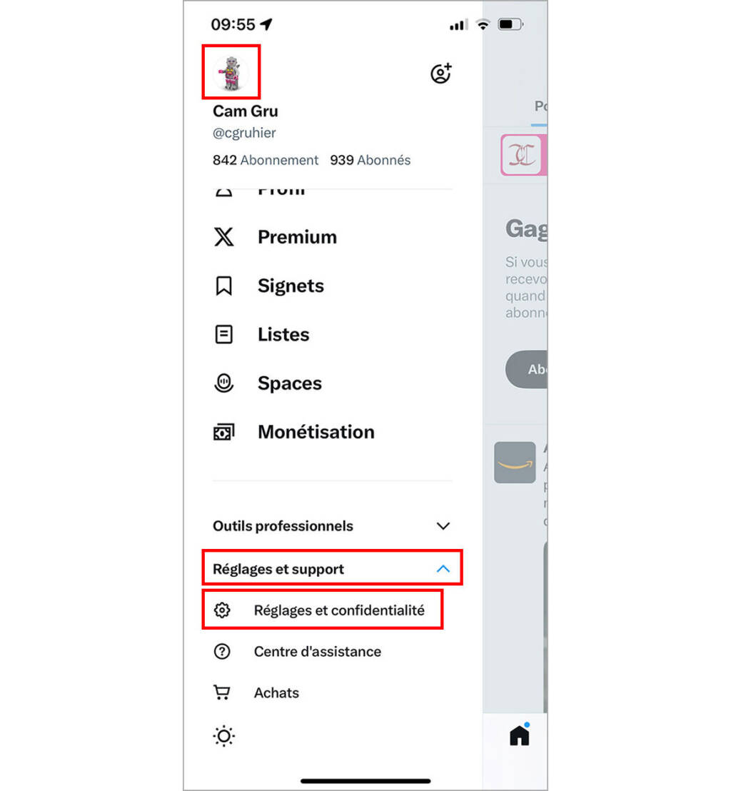Cliquez sur votre photo de profil et rendez-vous dans « Réglages et support » puis « Réglages et confidentialité ».