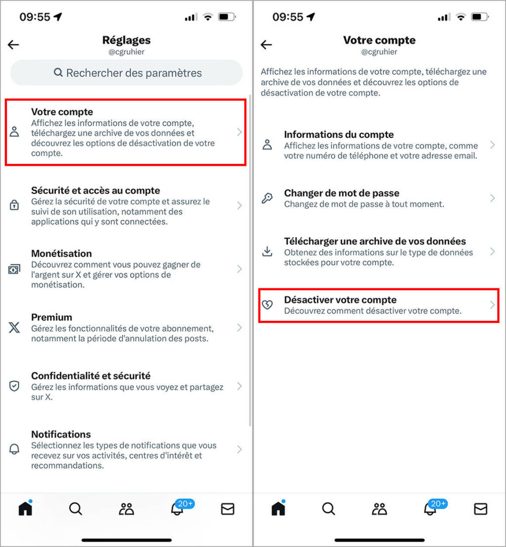 Dans les paramètres de votre compte, vous ne pourrez que « désactiver » votre compte. La démarche est similaire sur smartphone Android, sur iPhone ou sur ordinateur.