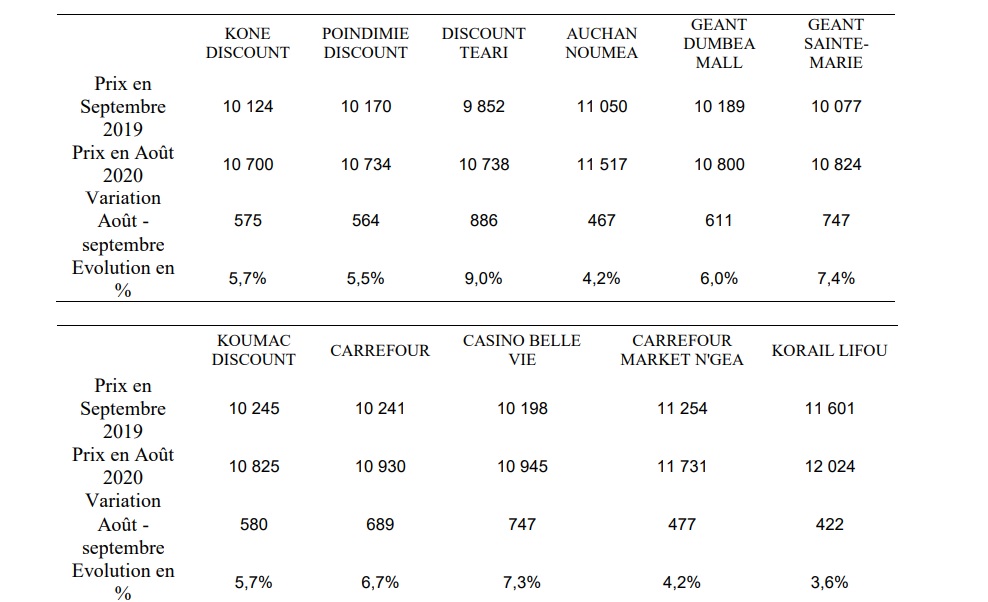 Les prix (3) du panier ont été comparés entre septembre 2019 et août 2020 :