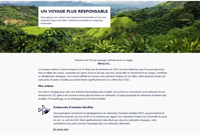 Inciter à payer un supplément au moment de l’achat du billet d’avion pour « compenser » les émissions de CO2 d’un vol, quand bien même les avantages climatiques de ces compensations sont très critiqués, alors que les dommages causés par les émissions de CO2 des trajets aériens sont indiscutables ;