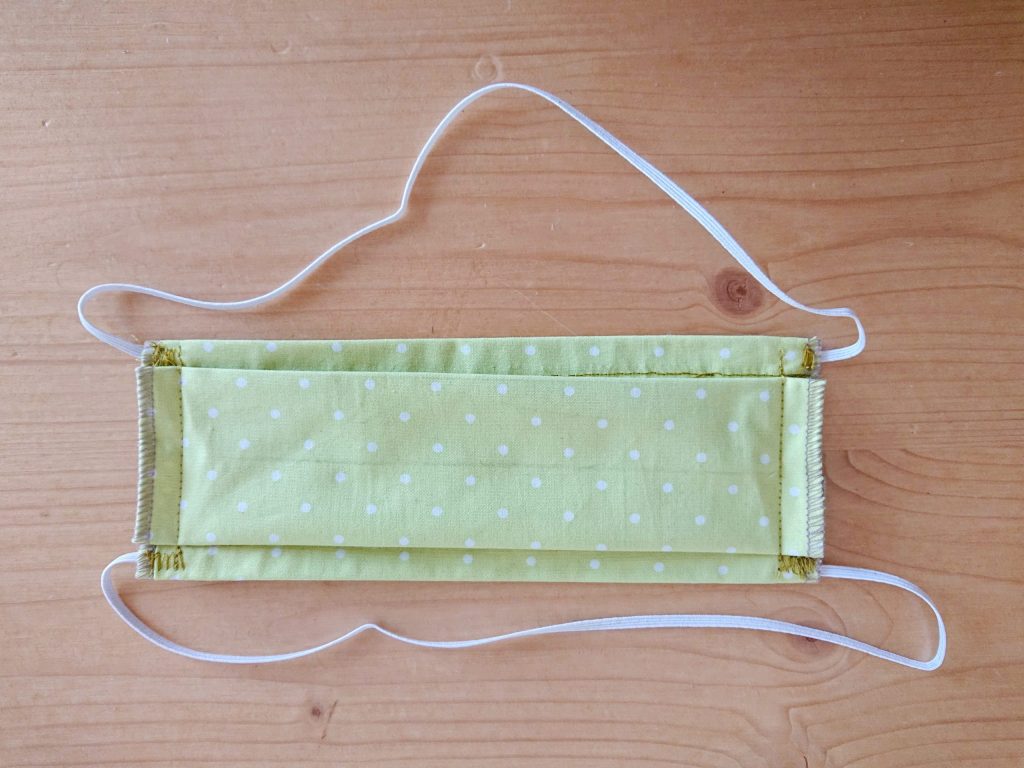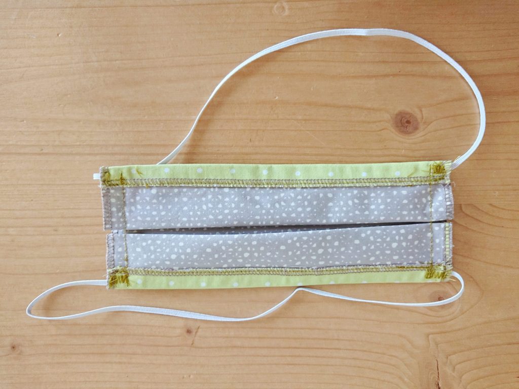 Je me suis permis une digression dans les recommandations au moment de la couture de l’élastique. Il est cousu sous le rentré et non par dessus, bien plus confortable à mes yeux. Le rendu fini est le même et les qualités du masque n’en sont pas détériorées