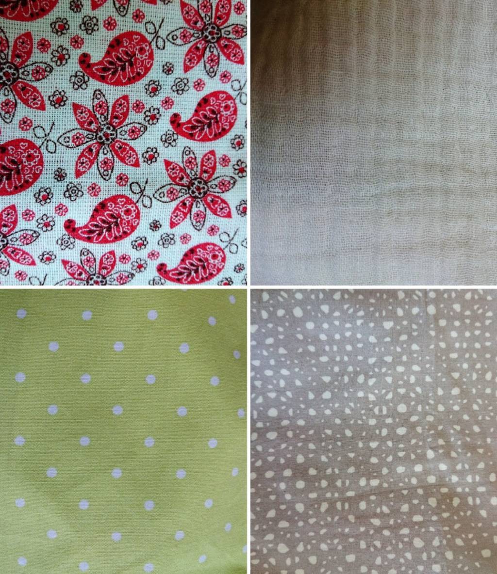 On nous parle de tissu 120 fils, c’est bien difficile à compter à l’œil nu, et un peu technique pour nous pauvres mortels. Ce sont souvent des draps d’excellente qualité qui sont en 120 fils, mais ça nous avance pas plus (sauf si vous vous décidez à couper dedans !) L’idée, c’est d’avoir un tissu à maillage serré, comme la popeline, on ne doit pas voir la soleil à travers. Bien sur, il laisse passer la lumière mais les mailles doivent être très rapprochées les unes des autres. Je vous ai pris des photos de tissus que j’ai à la maison pour vous donner un petit coup de pouce…Les deux tissus du haut, on voit qu’ils ont un maillage lache. Les deux du bas sont bien épais et leur maillage est serré. Regardez aussi la vidéo youtube que je vous ai mise en ligne, je vous les montre en vrai.