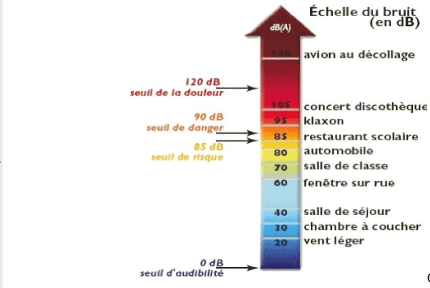 dépasse le niveau de 90 dB l’employeur établit et met en oeuvre un programme de mesures de nature technique ou d’organisation du travail destiné à réduire l’exposition au bruit. (Protections individuelles, niveaux