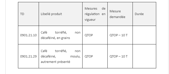 Pour commencer voici la réponse envoyée ce jour concernant la régulation du marché d’importation dans le secteur des cafés :