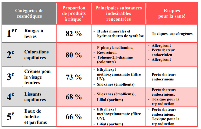 allergènes), soit 40.000 produits à ce jour ! En tête des cosmétiques les plus à risque, se trouvent les