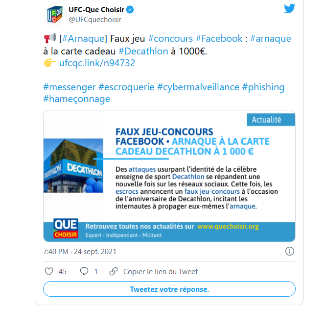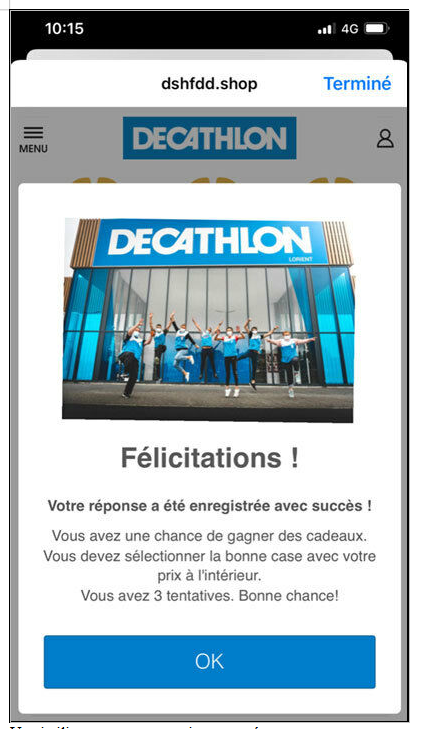 Decathlon a reconnu l’arnaque et explique agir « le plus rapidement possible pour la rendre inaccessible » auprès de l’UFC-Que Choisir. « Il s’agit de tentatives d’arnaque totalement extérieures à Decathlon, que nous ne pouvons pas anticiper » se désole l’enseigne.